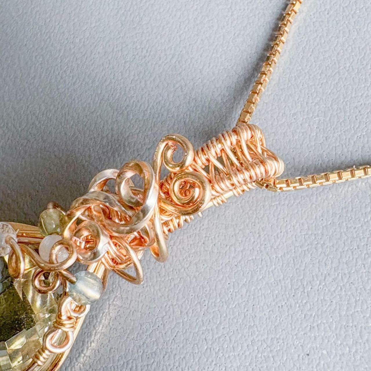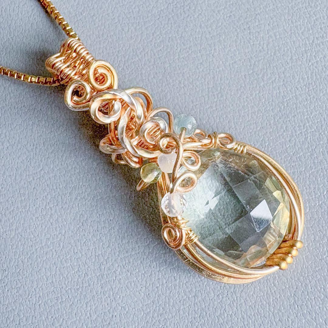 淡いグリーンの輝き グリーンアメジスト ペンダントトップ ワイヤーラッピング