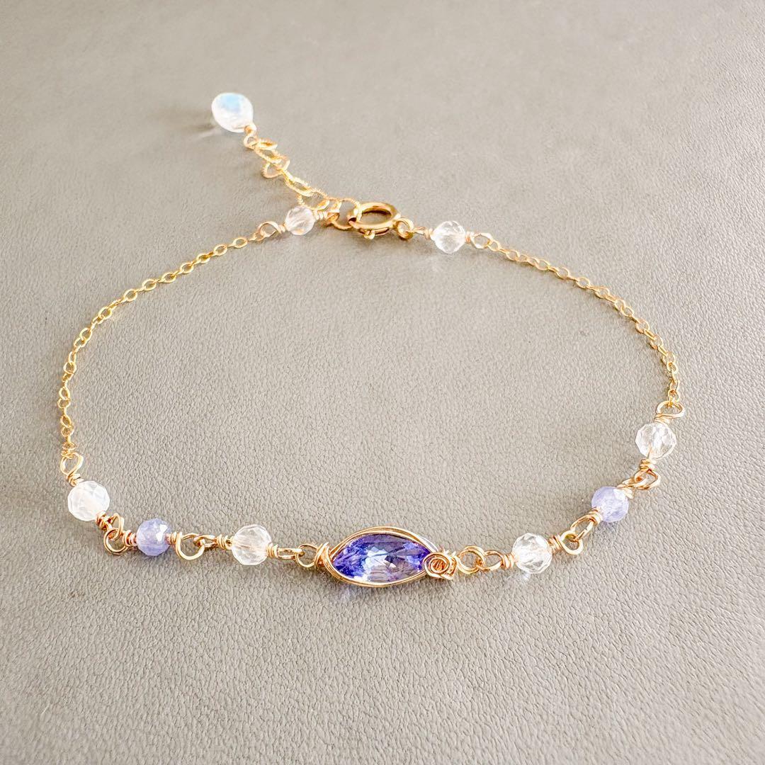 12月の誕生石 タンザナイト を主役にした華奢なブレスレットです。